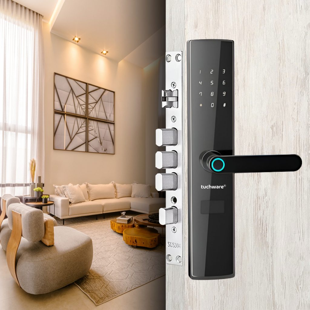 Tuchware XS3500-RM Rim Smart Lock | 8 Way Unlocking – Fingerprint, Passcode, RFID, Wi-Fi App, Remote Unlock, OTP, Mechanical Key | Smart Door Lock