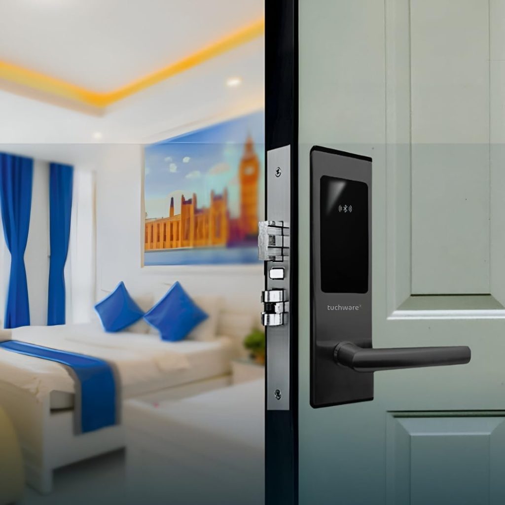 Tuchware XS1200 (RFID + BLE) with Bluetooth App Control | RFID Card Access, Mechanical Key & Dual Orientation Design (Right & Left) | Digital Lock for Hotels | Easy Installation